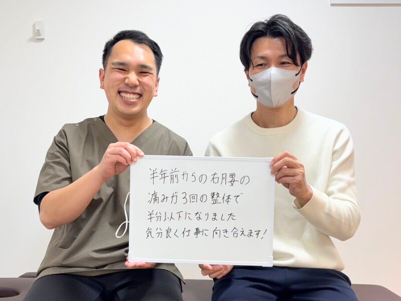 半年前からの右腰の痛みが3回の整体で半分以下になりました。