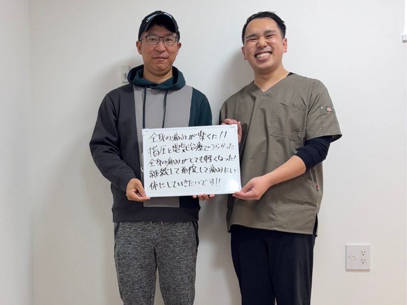 全身の痛みが楽に!!指圧と電気治療でつらかった全身の痛みがとても軽くなった!